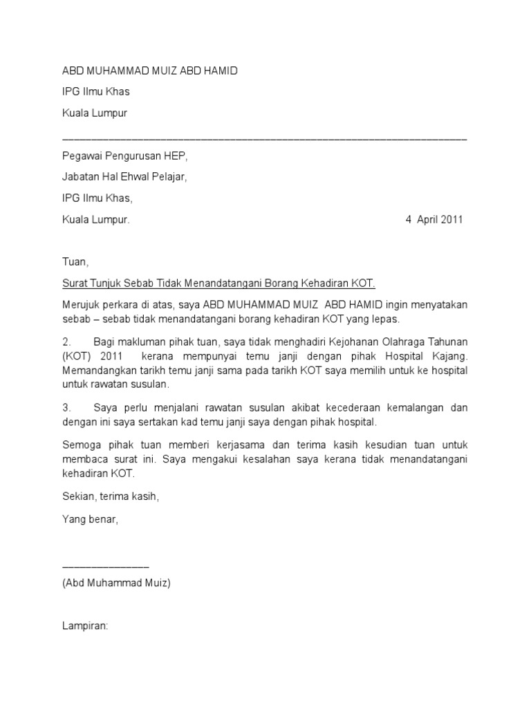 Surat Tunjuk Sebab Tak Hadir Mesyuarat Pdf